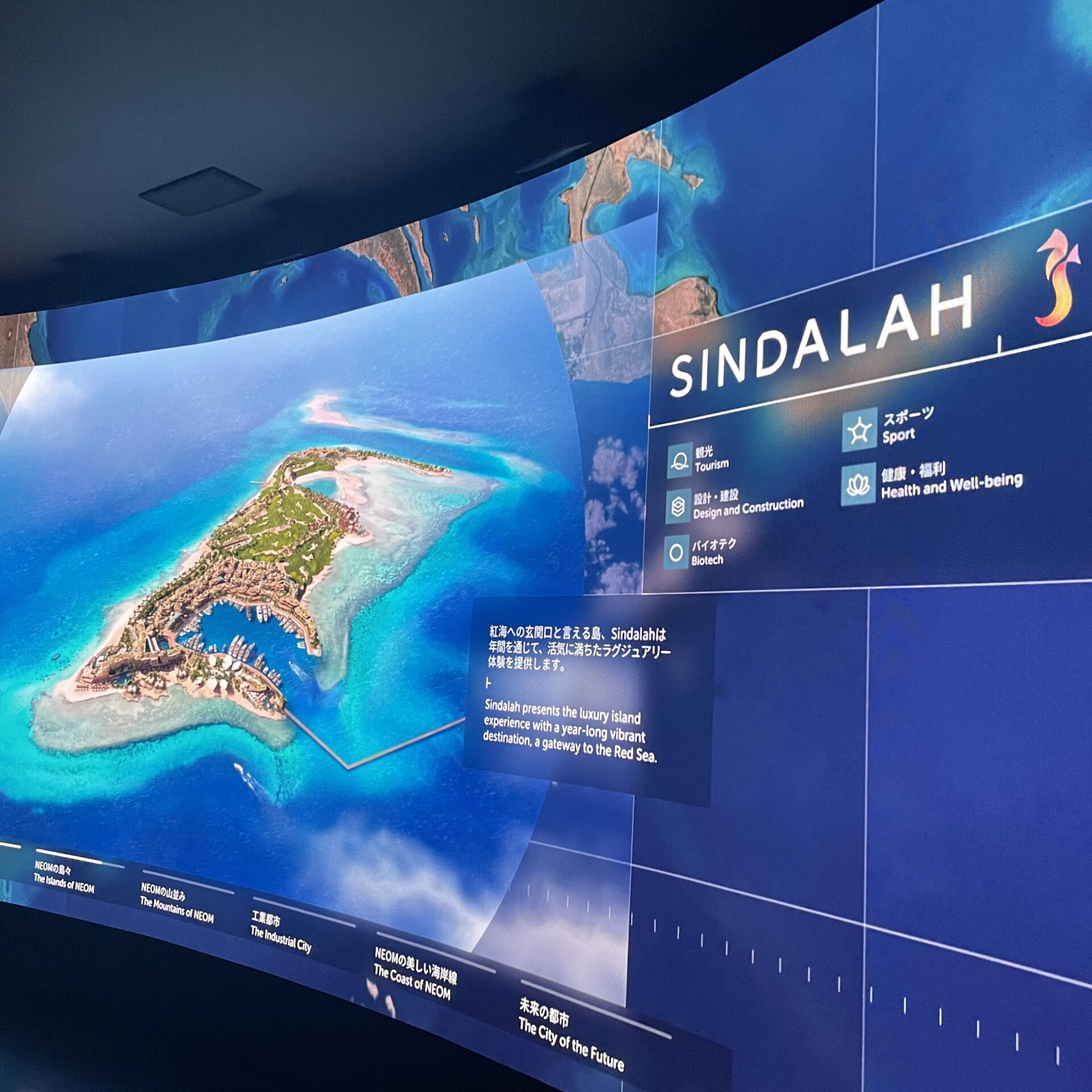 「俺はこの NEOM の国家プロジェクトの一つ、SINDALAH(シンダラー)島でマリンスポーツ関係の仕事をしていたんだ。」